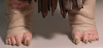 What little hair he has is stringy and sparse on his scalpt. TBD did a good job on capturing the movie look of this guy. His ears are pointy and also afflicted with the redness that must come from just a totally gross amount of rubbing and scratching. His eyes may look slightly derpy, but I think it works for this character. Sure he might have the googly eye, but they still have a malevolence about them I find impressive at this scale.